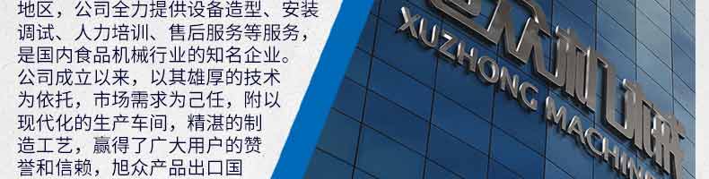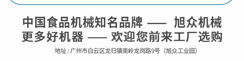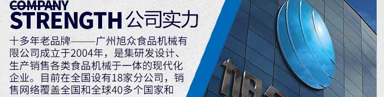 廣州旭眾食品機(jī)械有限公司是一家集科研開發(fā),生產(chǎn)設(shè)計(jì),營銷服務(wù)為一體的現(xiàn)代化生產(chǎn)企業(yè)。現(xiàn)代化生產(chǎn)車間,精湛制造技術(shù),所產(chǎn)機(jī)械歷經(jīng)市場(chǎng)重重考驗(yàn),不斷贏得海內(nèi)外客戶的贊譽(yù)。