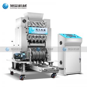 XZ4T -1502多頭湯圓成型排盤機,湯圓機,本機只要將面團放入進料口,開機便可自動搓圓、成型的設(shè)備,一次性成型四次產(chǎn)品,制品不易變形,工作效率高