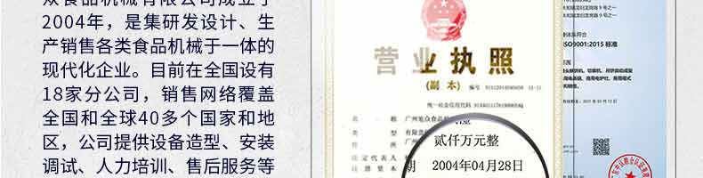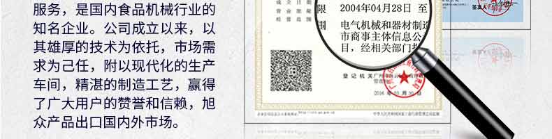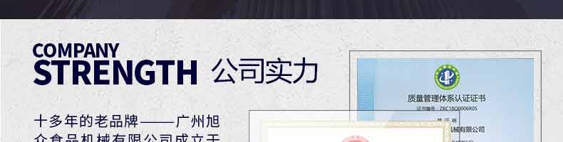 廣州旭眾食品機械有限公司是一家集科研開發(fā),生產(chǎn)設(shè)計,營銷服務(wù)為一體的現(xiàn)代化生產(chǎn)企業(yè)。現(xiàn)代化生產(chǎn)車間,精湛制造技術(shù),所產(chǎn)機械歷經(jīng)市場重重考驗,不斷贏得海內(nèi)外客戶的贊譽。
